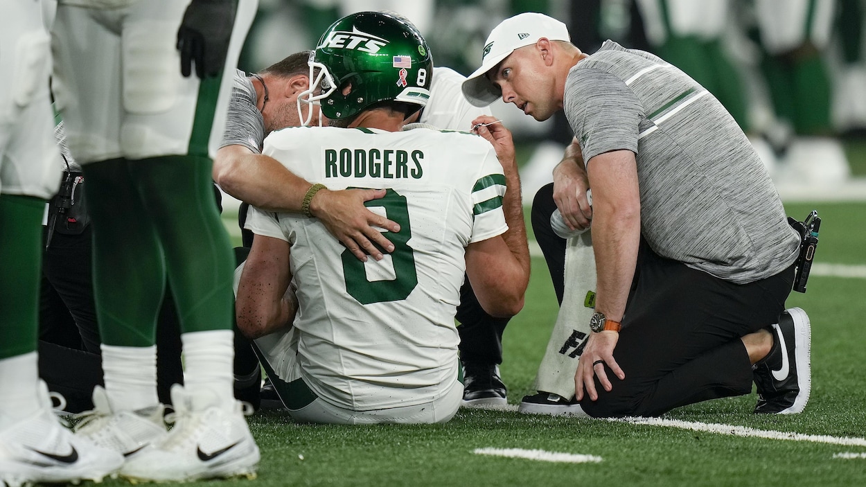 Aaron Rodgers rejoins Jets teammates for Sunday night game vs. Chiefs | AP News