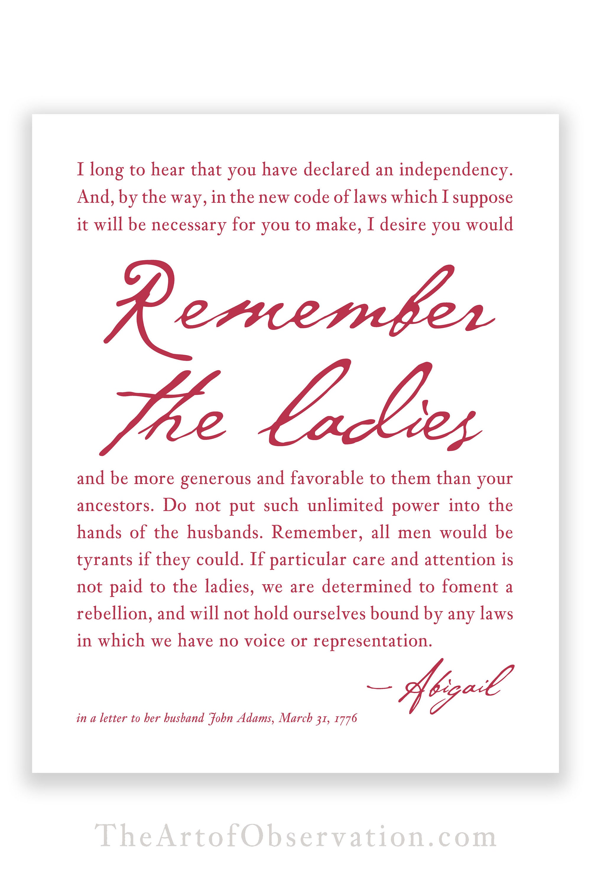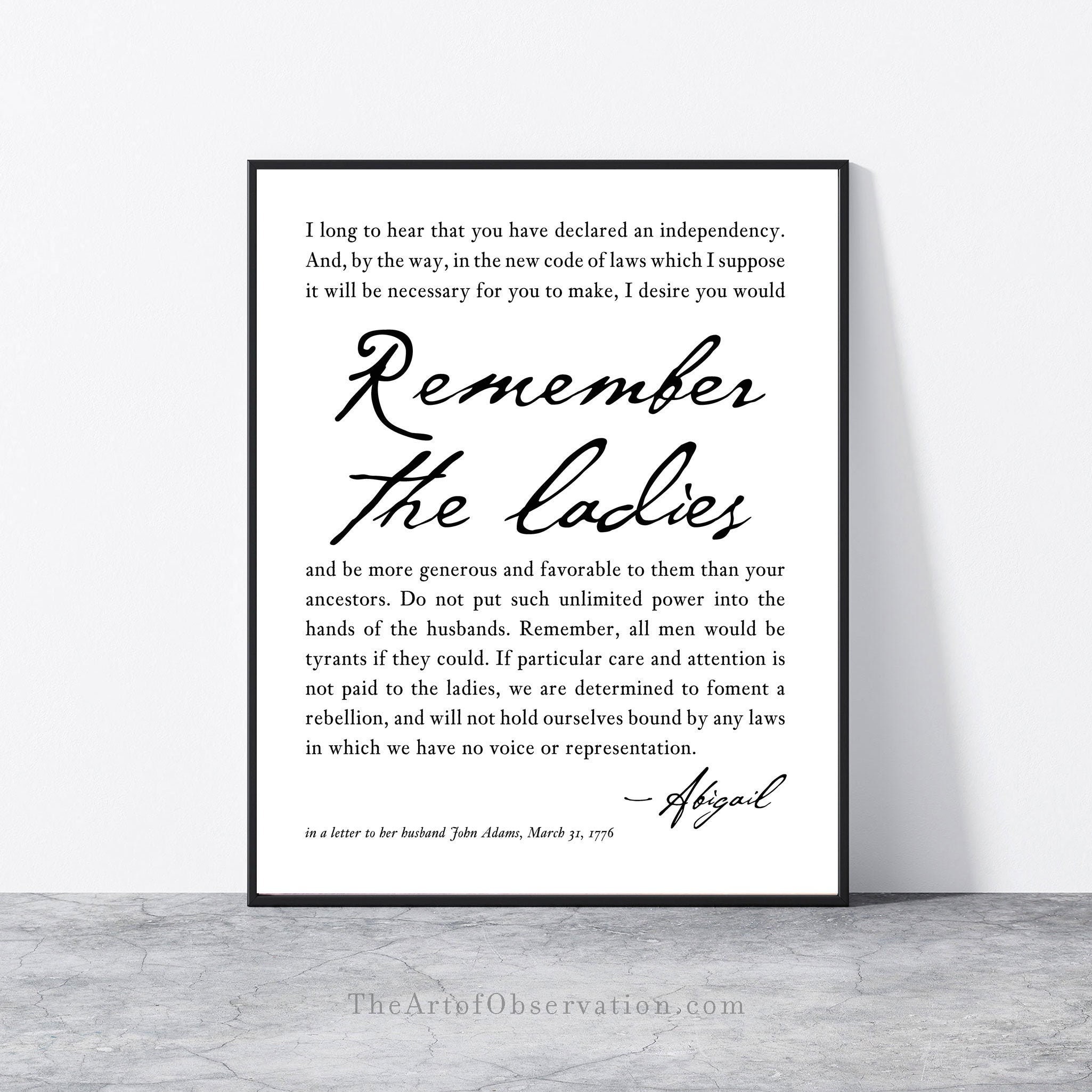Abigail Adams citation impression Rappelez-vous les dames Feminist ...