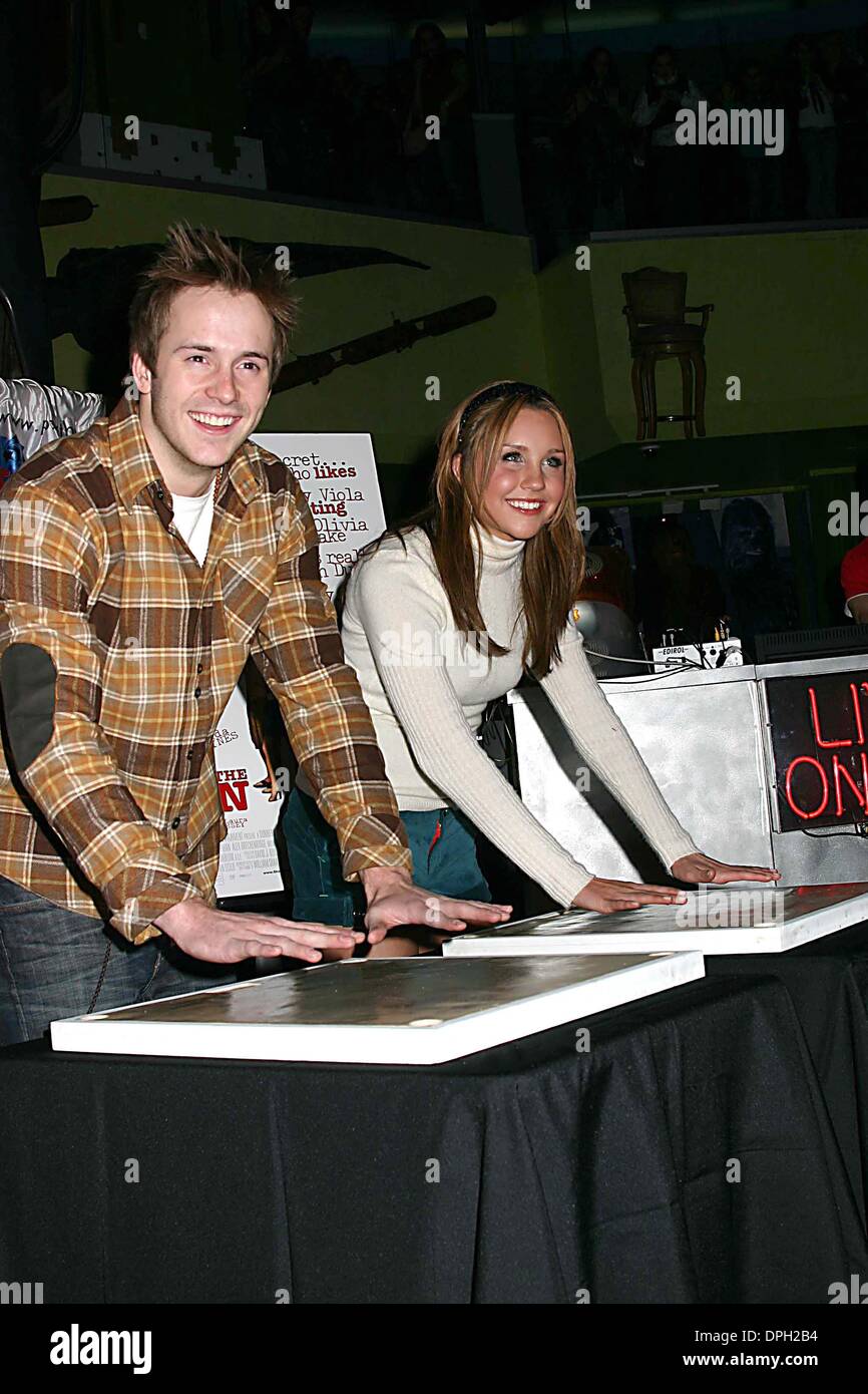 Feb. 24, 2006 - New York, New York, U.S. - K46972ML.AMANDA BYNES AND ROBERT HOFFMAN CO-STARS OF ''SHE'S THE MAN'' CONTRIBUTE THEIR HAND PRINTS TO PLANET HOLLYWOOD'S WALL OF FAME AT PLANET