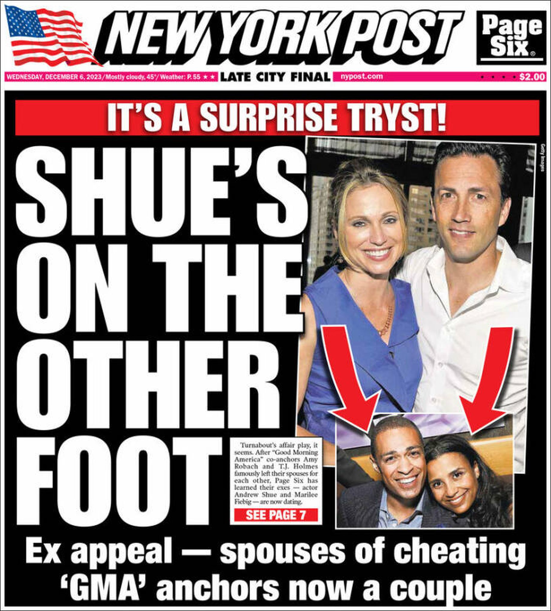 𝙵𝚛𝚘𝚗𝚝 𝙿𝚊𝚐𝚎𝚜 𝚃𝚘𝚍𝚊𝚢 📰 on X: "🇺🇸 Shue's On The Other Foot ▫Amy Robach and T.J. Holmes' exes Andrew Shue and Marilee Fiebig are dating after bonding over traumatic cheating experience ▫@CarlosGreer @