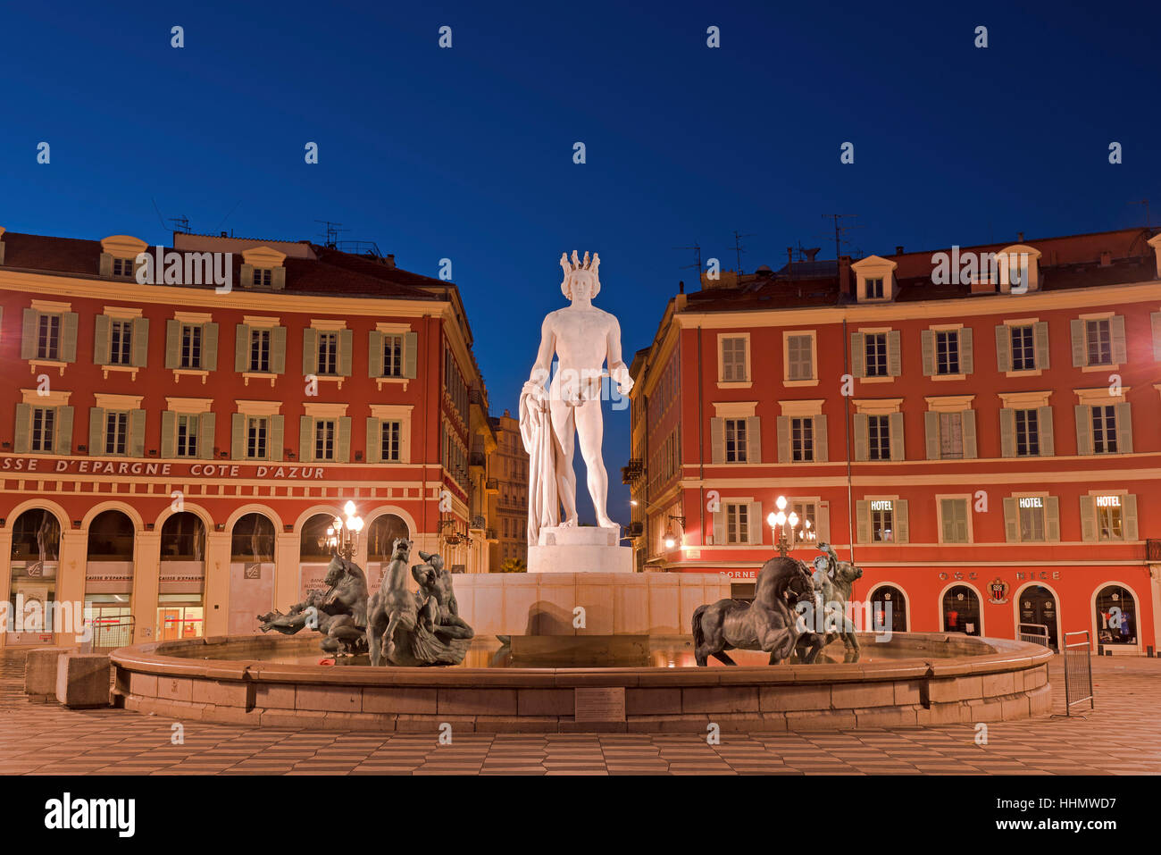 Fontaine du Soleil, Apollo statue, blue hour, Nice, Provence-Alpes ...