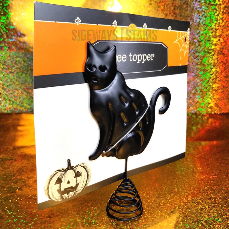 SPOOKY CAT SILHOUETTE HALLOWEEN TREE TOPPER 5" black tin metal decoration cute | eBay