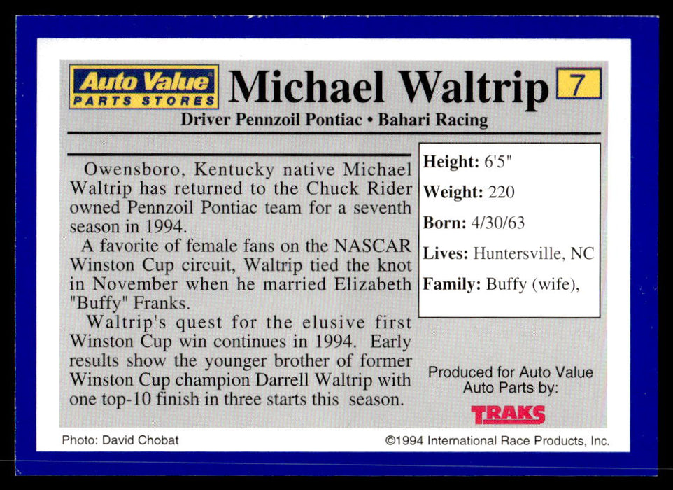 Michael Waltrip 1994 Traks Auto Value Parts Stores Collector Cards # 7 — Collectible Craze America