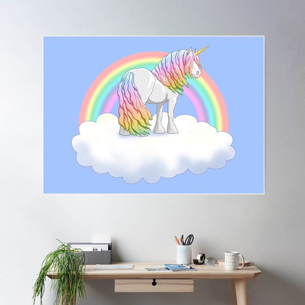Poster for Sale avec l'œuvre « Licorne arc-en-ciel Gypsy Vanner & Nuage » de l'artiste csforest | Redbubble