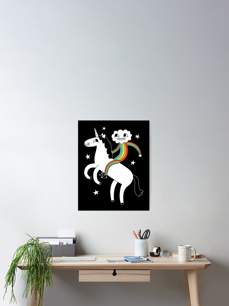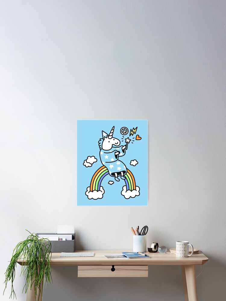 Poster for Sale avec l'œuvre « Magicien Licorne assis sur un arc-en-ciel » de l'artiste obinsun | Redbubble