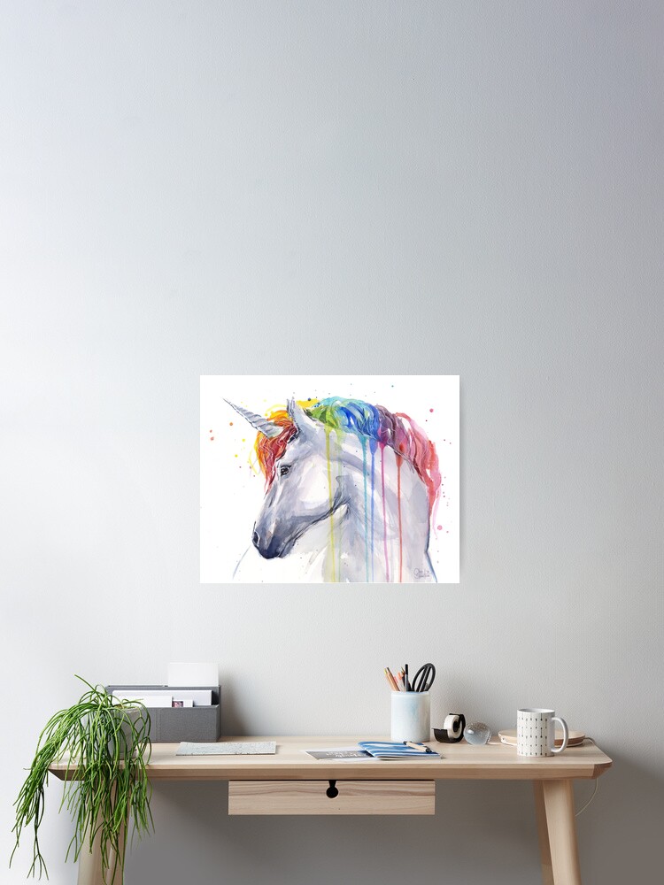 Poster for Sale avec l'œuvre « Aquarelle de licorne arc-en-ciel » de l'artiste Olga Shvartsur | Redbubble