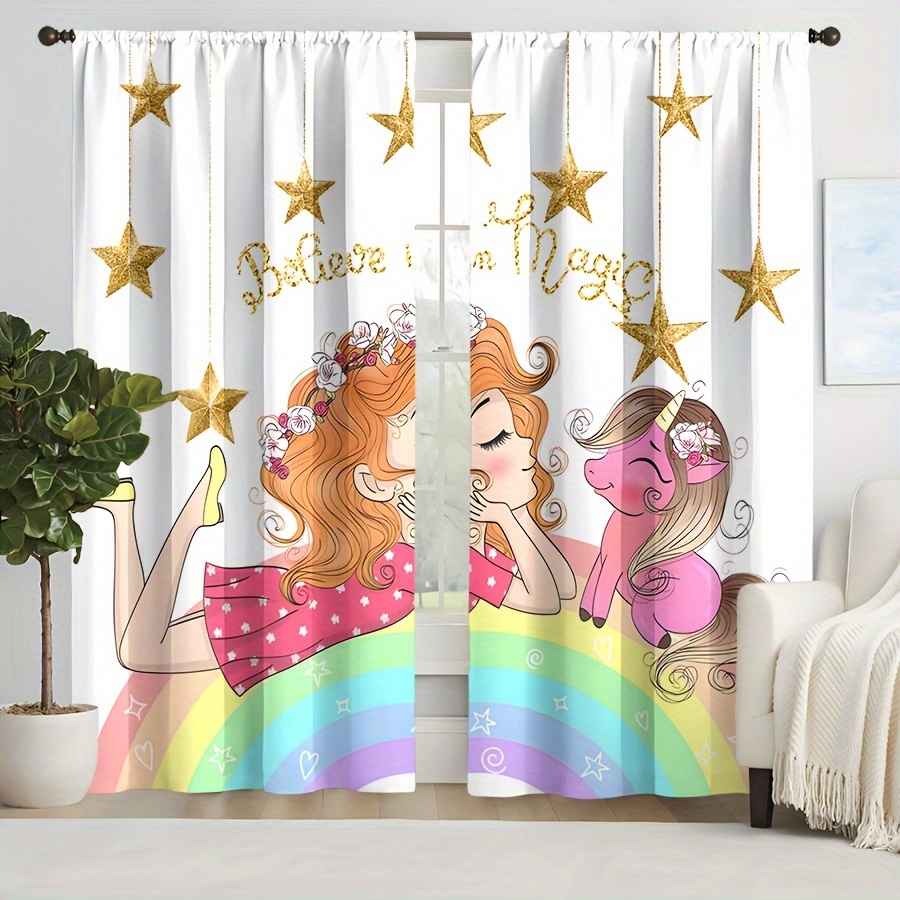 2pcs Nouvelle Licorne Arc-en-ciel Moderne Impression Numérique Rideau À Poche Pour Tringle À Rideau Rideaux Pour Salon Bureau Décoration Maison - Temu France