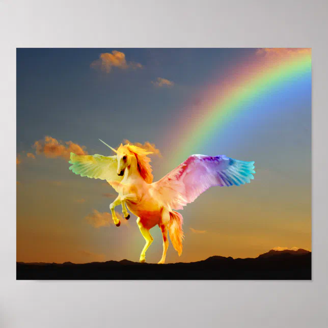 Poster Pégasus à licorne arc-en-ciel | Zazzle.ca