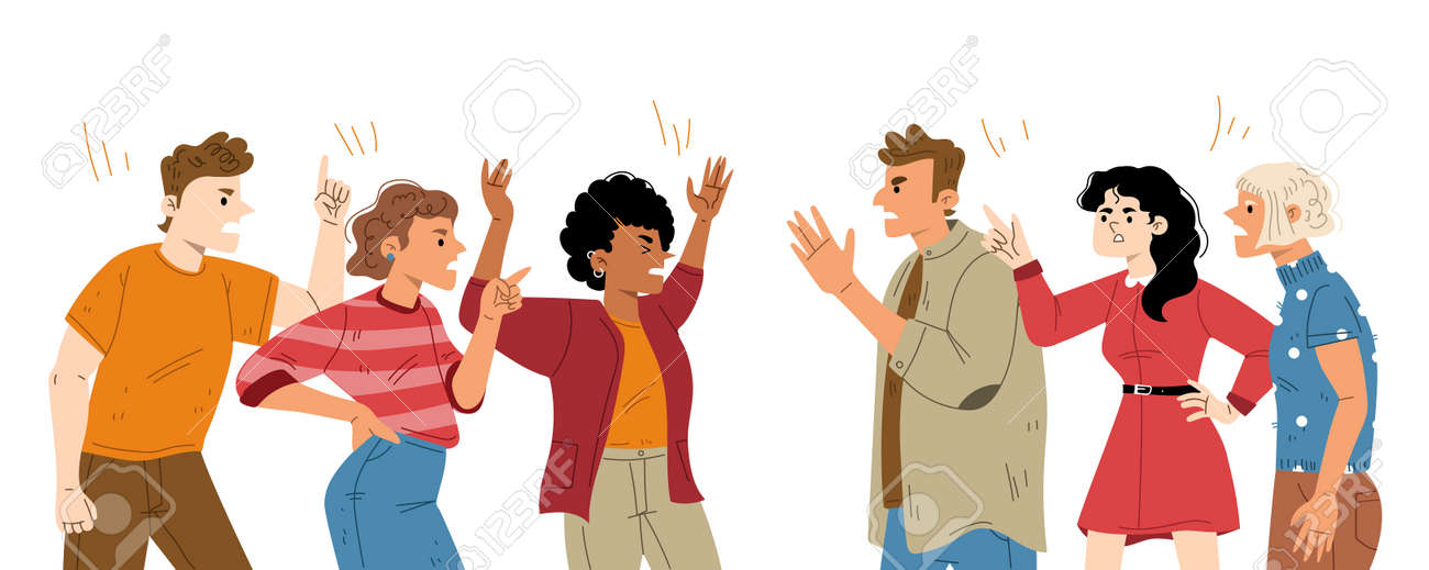 Premium Vector | Groups of conflicting people quarrelling ...