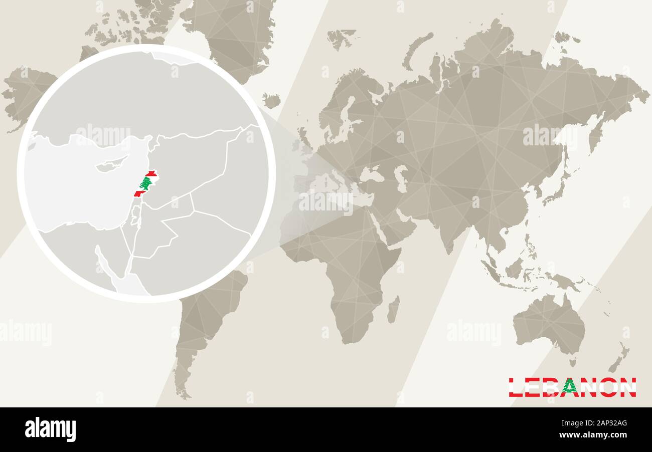 Zoom sur le Liban la carte et drapeau. Carte du monde Image Vectorielle Stock - Alamy