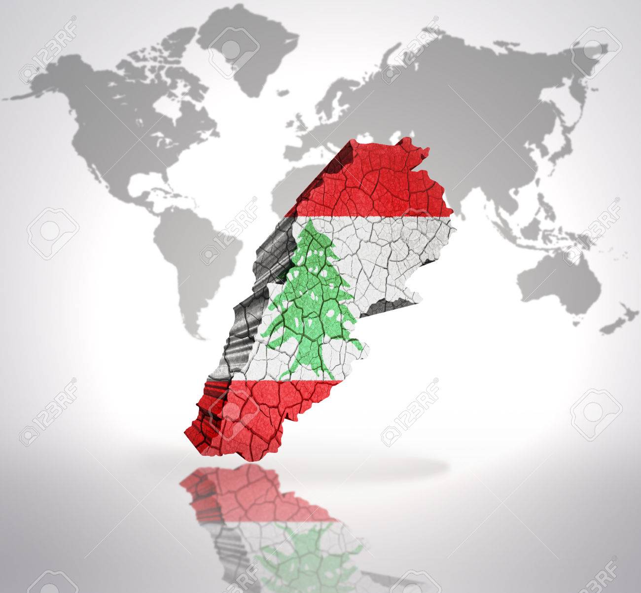 Carte Du Liban Avec Le Drapeau Libanais Sur Une Carte Du Monde Arrière-plan Banque D'Images et Photos Libres De Droits. Image 32849759