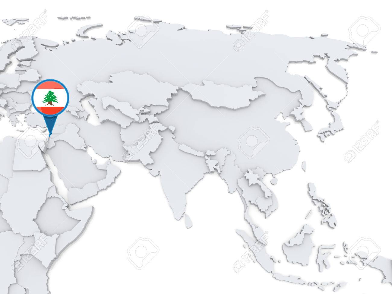 Carte Du Liban Avec Le Drapeau Libanais Sur Une Carte Du Monde ...