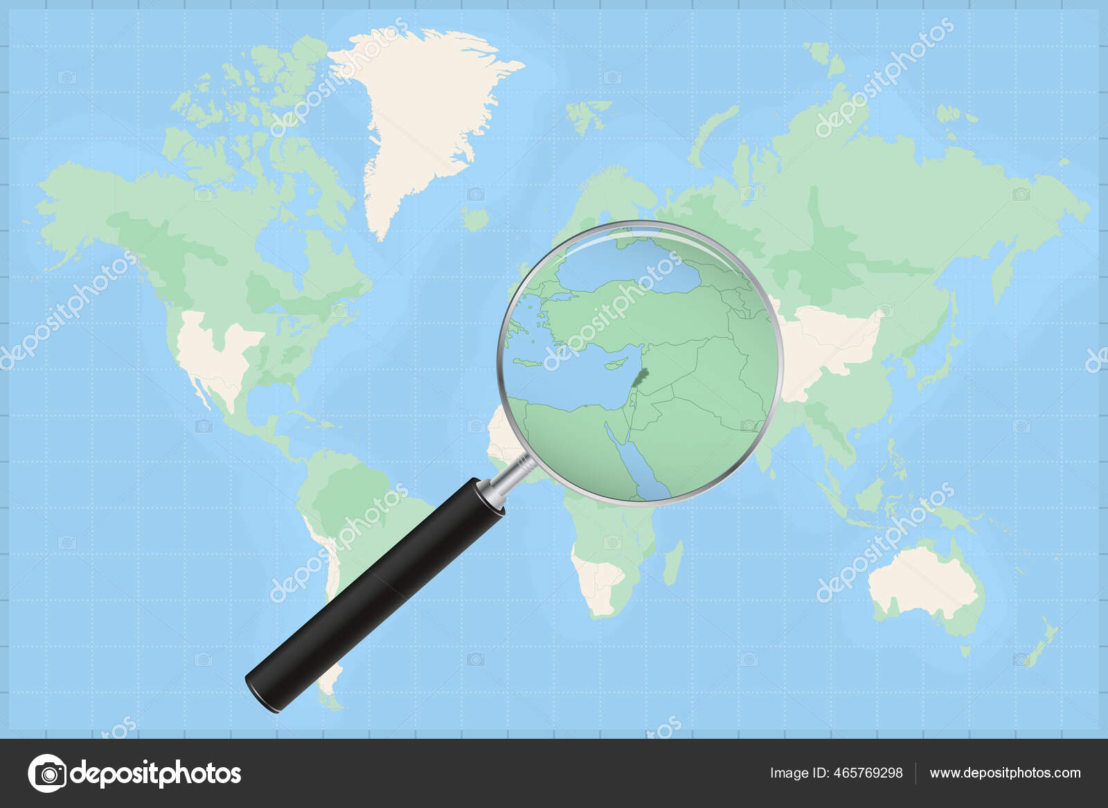 Carte du monde avec une loupe pointant vers le liban. carte du ...
