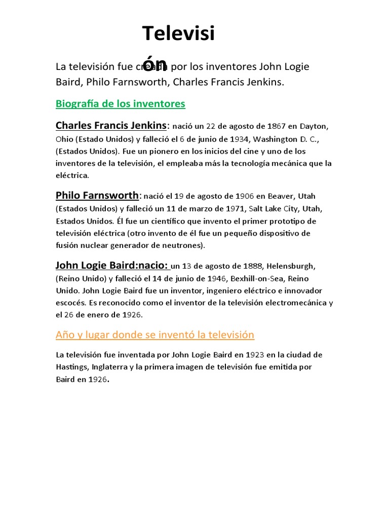 La historia de la invención de la televisión y sus inventores pioneros | PDF