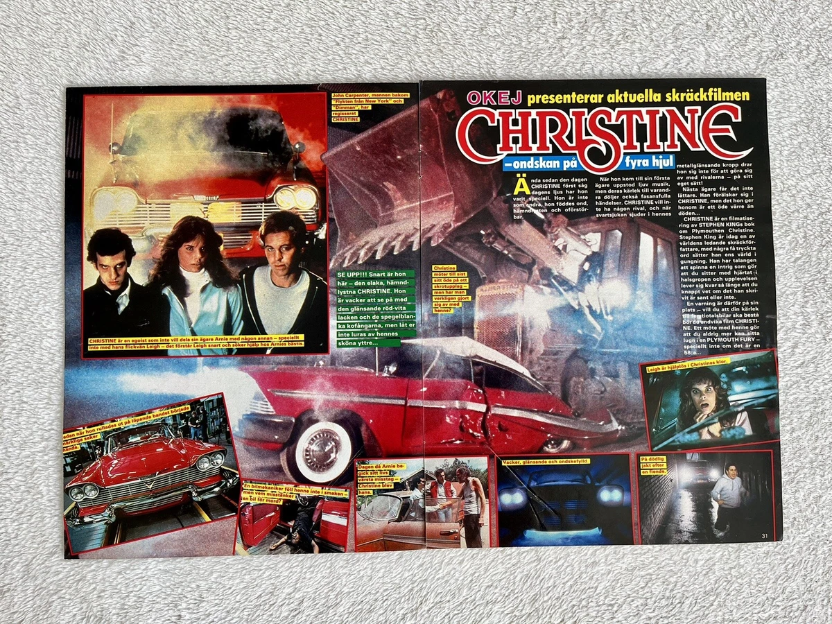 CHRISTINE 1984 MOVIE STEPHEN KING Clipping Poster Swedish magazine Okej 1980s | eBay