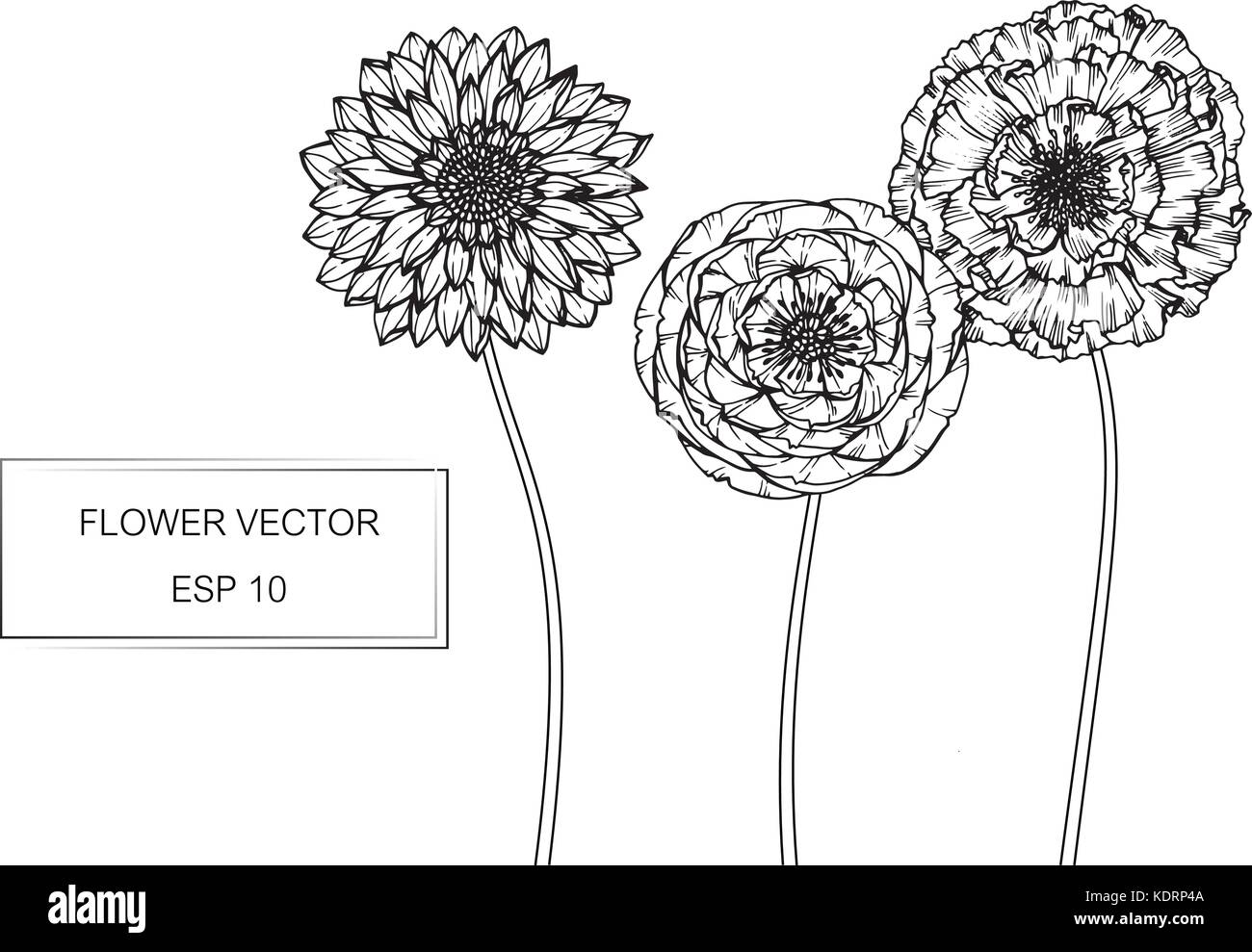 Dessin noir et blanc de fleurs Banque de photographies et d'images à haute résolution - Alamy
