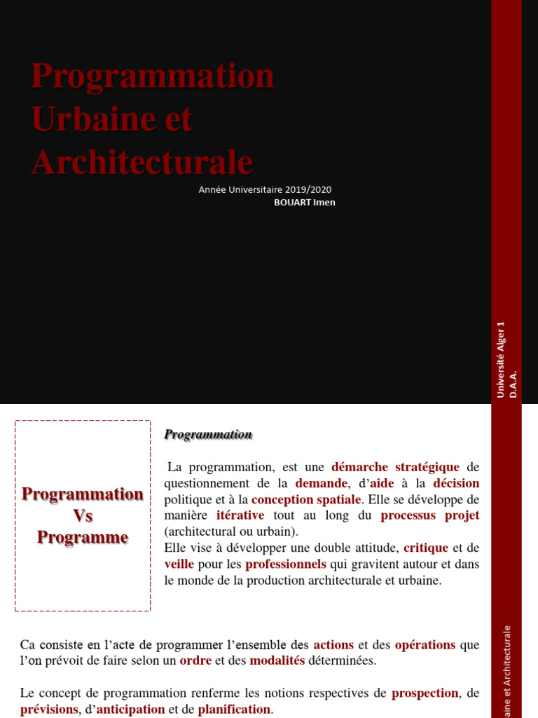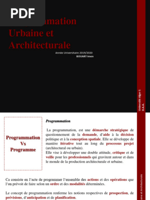 Programmation Urbaine Et Architecturale - 1 Er Année Master ...