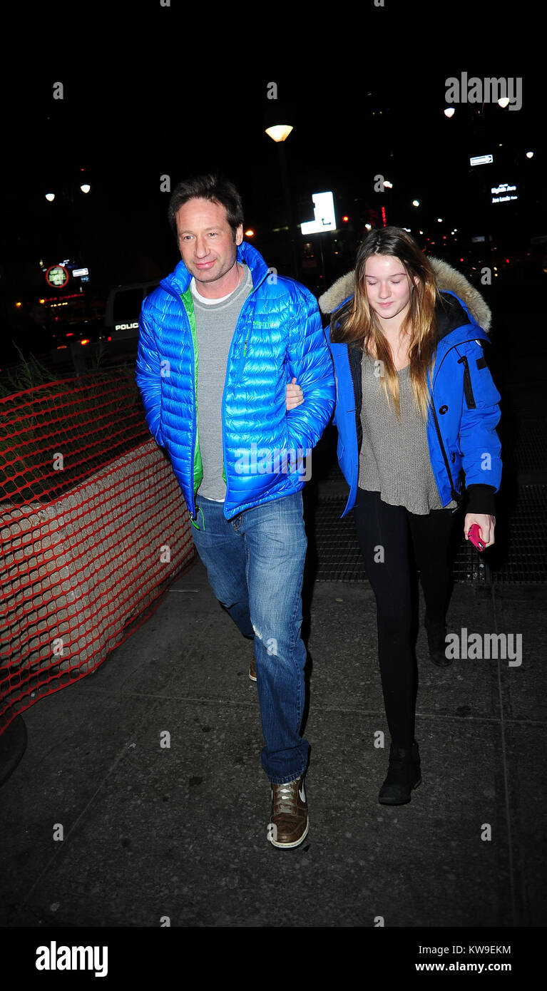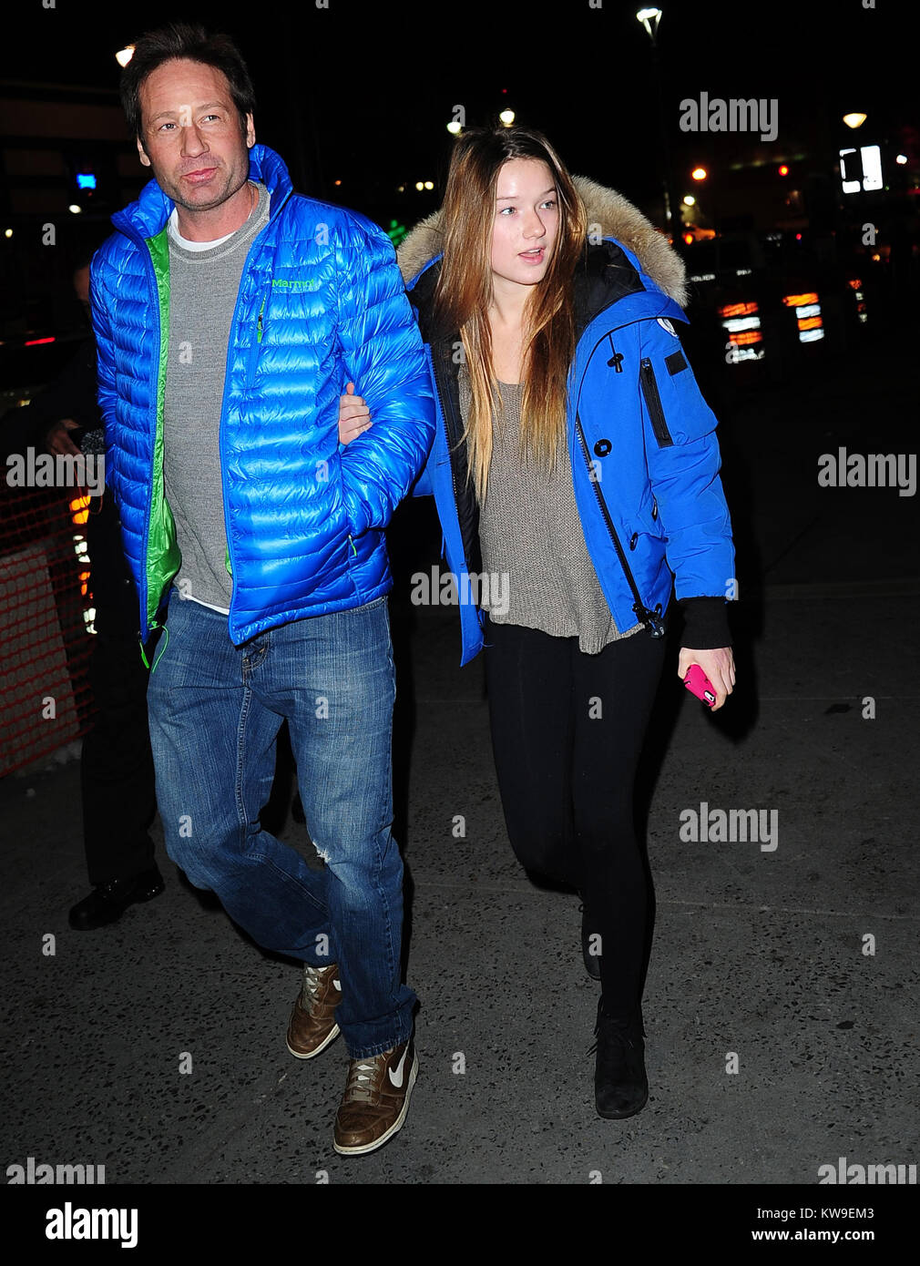 NEW YORK, NY - JANUARY 09: David Duchovny Madelaine West Duchovny seen arriving at Madison Square Garden on January 9, 2014 in New York City. People: David Duchovny Madelaine West Duchovny Stock Photo - Alamy