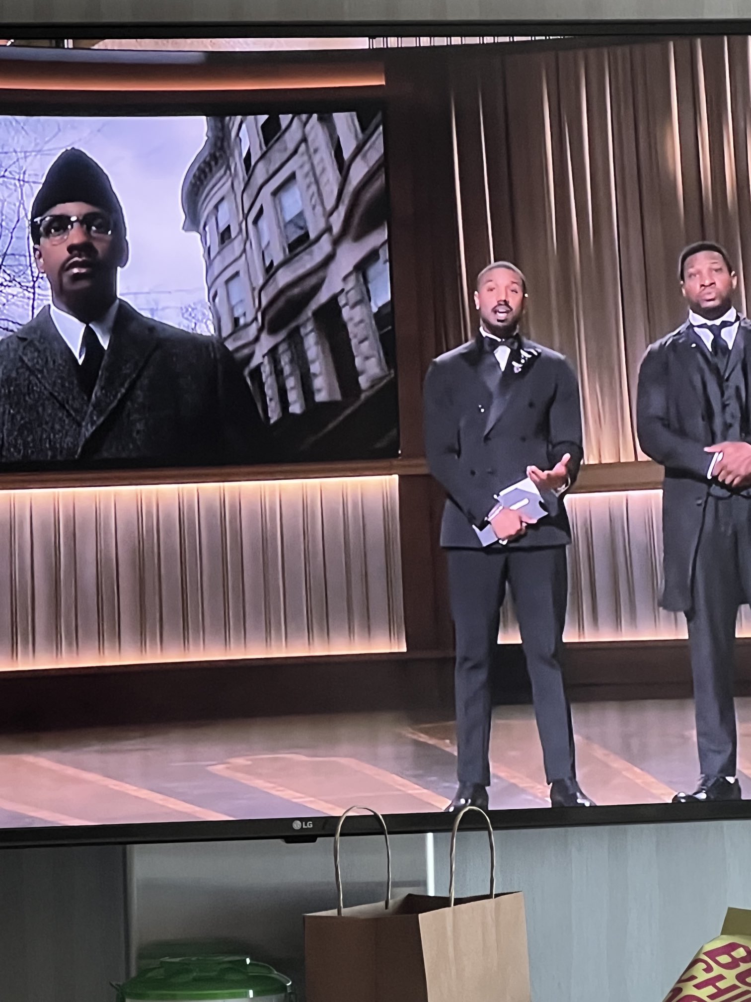 Kevin Powell on X: "This is the shot of the night for me: Denzel Washington as Malcolm X on screen, with Michael B. Jordan and Jonathan Major presenting, and Jonathan dressed in
