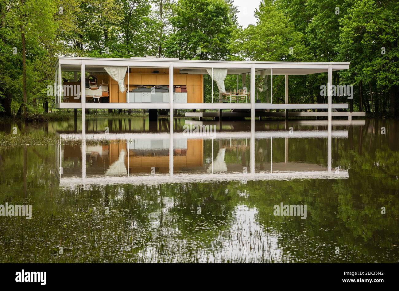 The Farnsworth House, built by Ludwig Mies van der Rohe in 1951 and located near Plano, Illinois, Stock Photo, Picture And Rights Managed Image. Pic. VIW-GSMI-0018-0003 | agefotostock