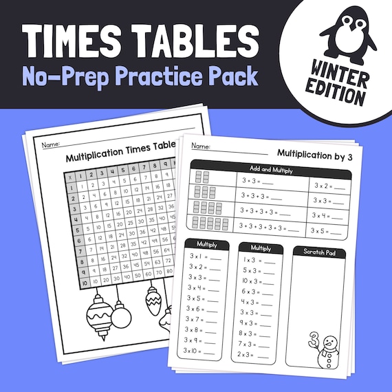 Apprenez les tables de temps de multiplication 1-10 Feuilles de travail sur les faits de multiplication d'hiver, multiplication de Noël 1er, 2e, 3e PDF imprimable - Etsy France