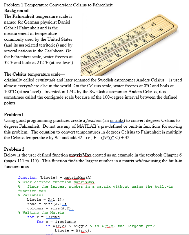 Solved Problem 1 Temperature Conversion: Celsius to | Chegg.com