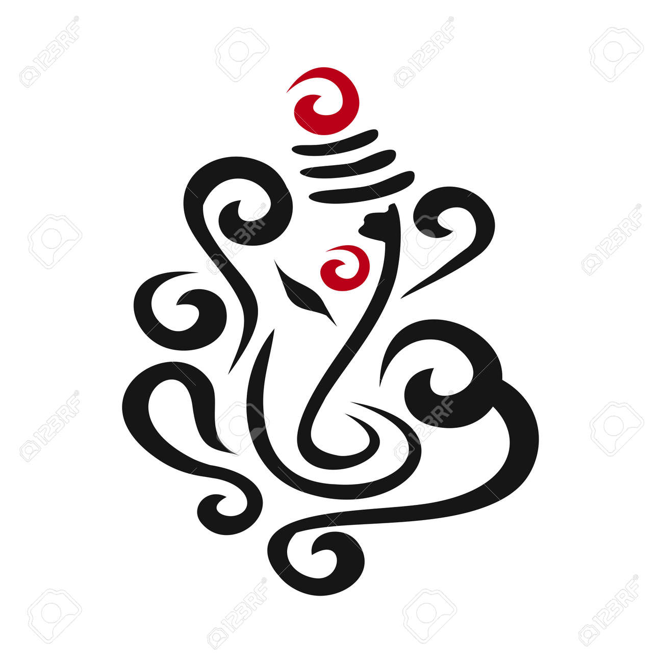 Ganesha Drawing Om Symbol Tattoo Icon on Black Background Vector Stock Vector - Illustration of lucky, floral: 188939227