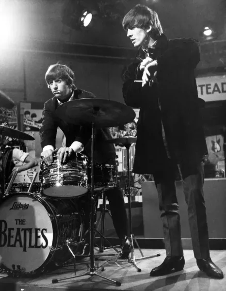 Beatles drummer Ringo Starr with George Harrison at TV