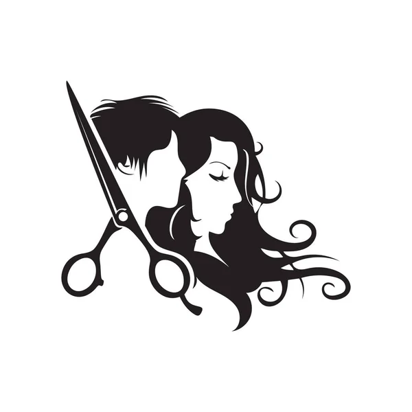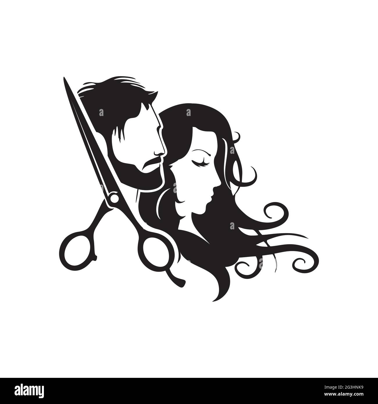 Logo du coiffeur, logo du salon de beauté avec silhouettes homme et femme, illustration vectorielle Image Vectorielle Stock - Alamy