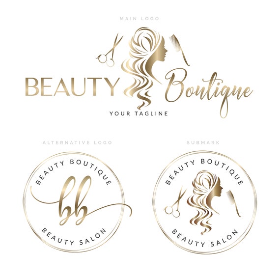 Logo de salon de coiffure, logo de coiffeur, logo de coiffeur doré, kit de marque de salon de coiffure, logo accroché aux ciseaux, logo préfabriqué, logo de salon de beauté - Etsy