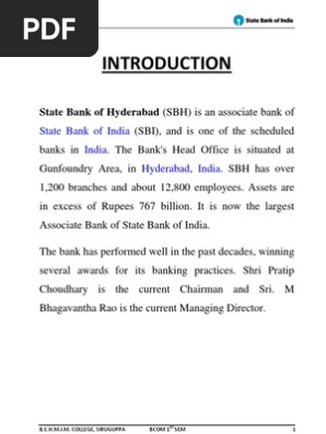 State Bank of Hyderabad (SBH) Is An Associate Bank of | PDF ...