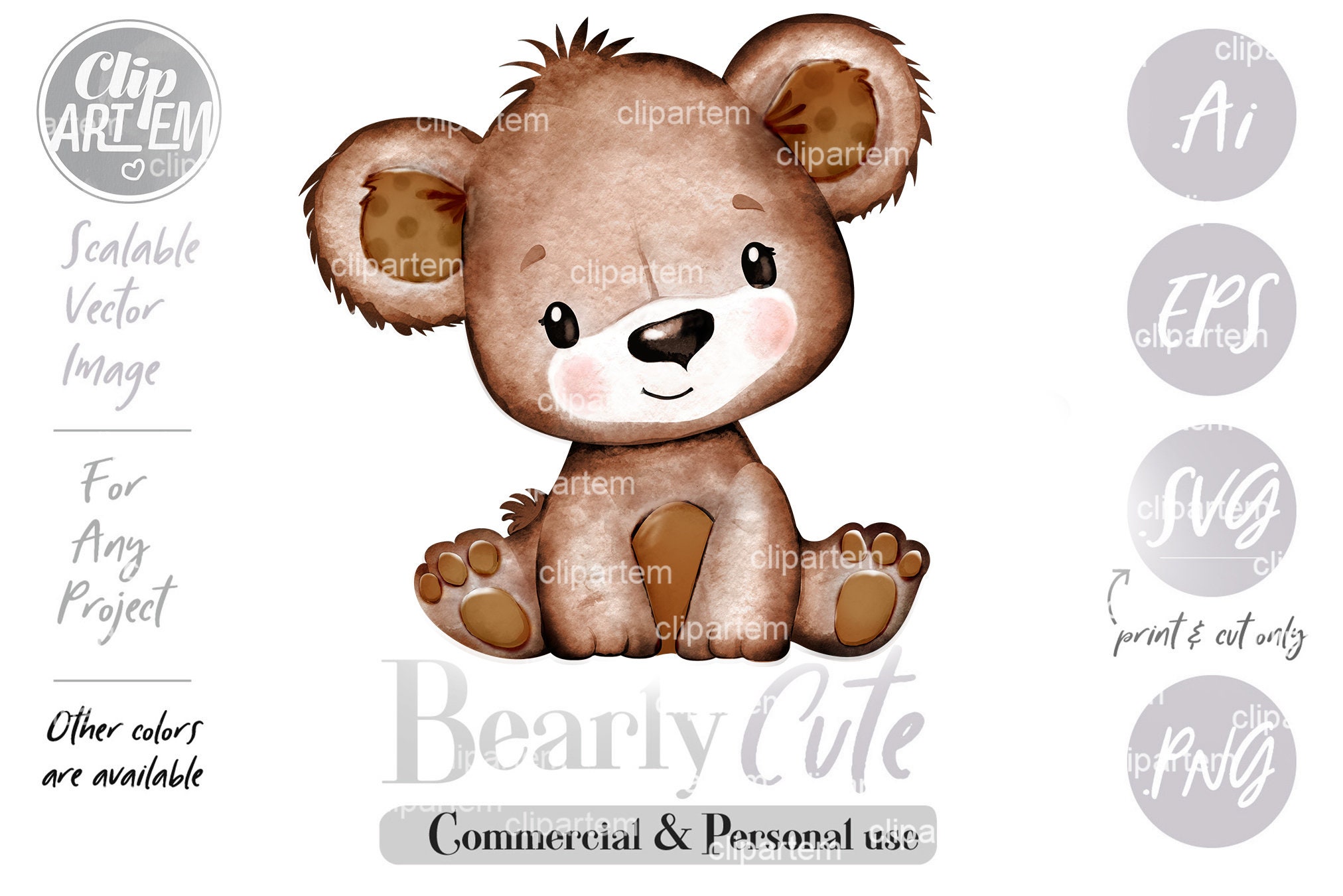 Brown Teddy Bear Gender Neutral Watercolor Clip Art,brown ...