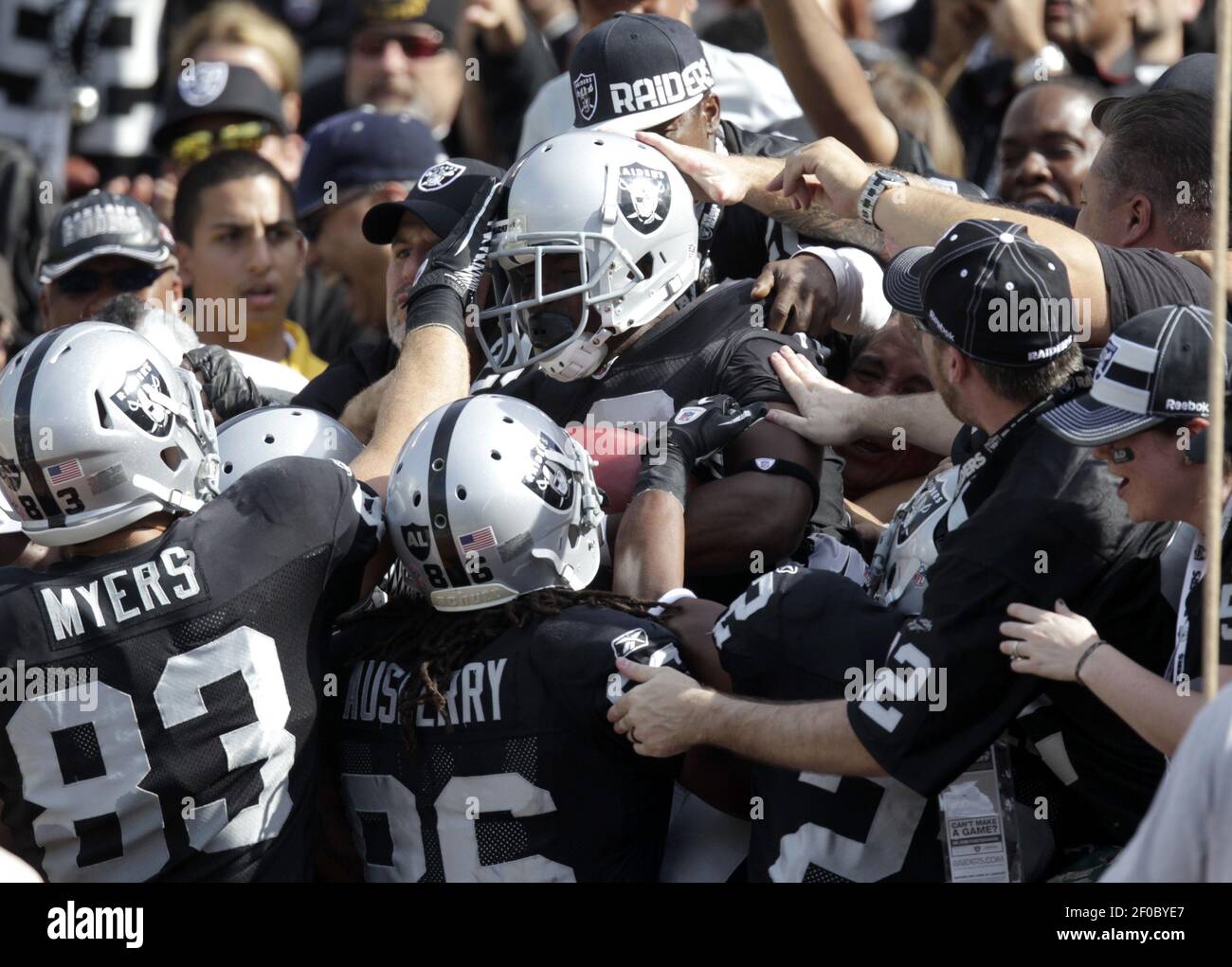 Oakland Raiders wide receiver Jacoby Ford (12) is congratulated by ...
