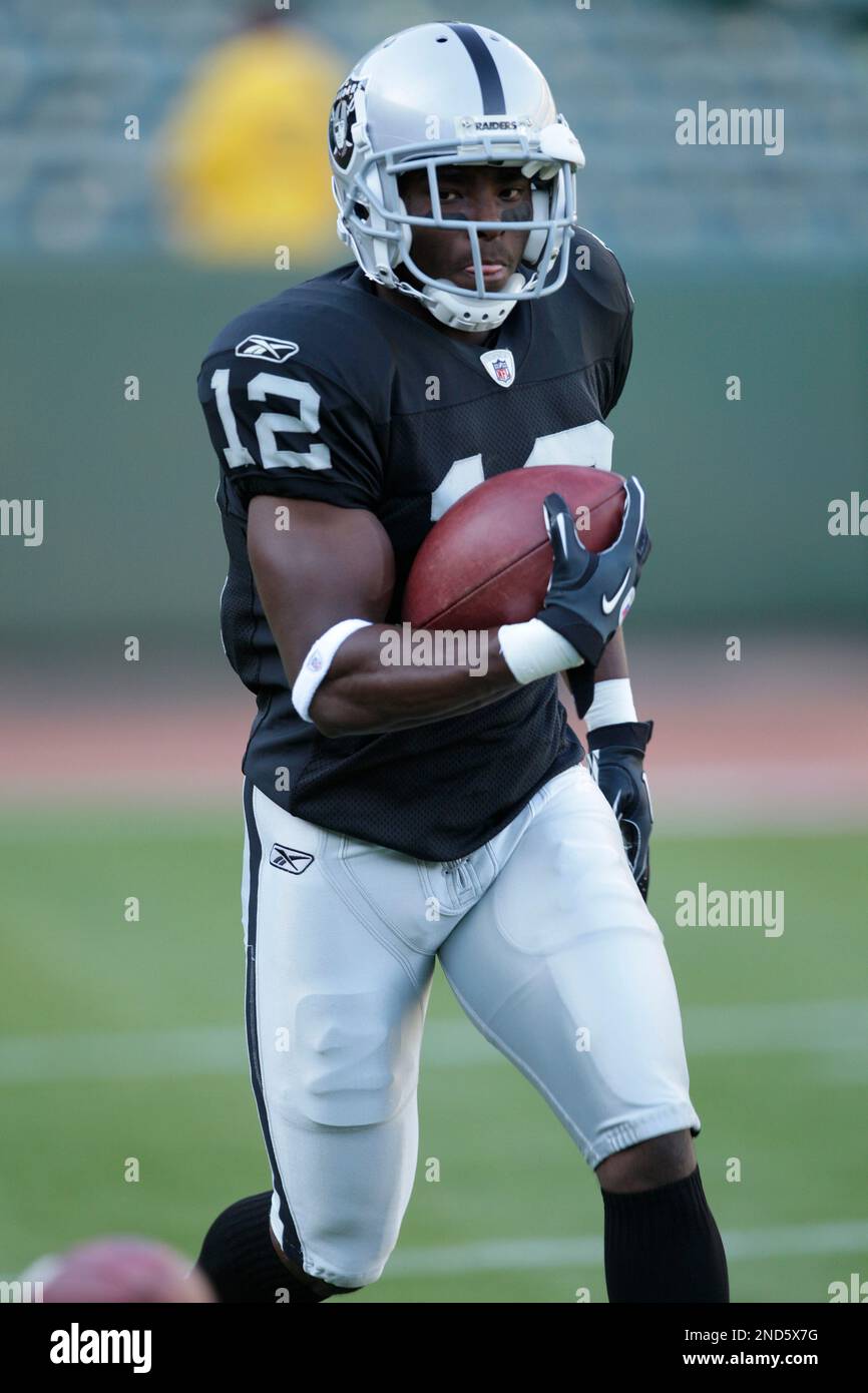 Oakland Raiders wide receiver Jacoby Ford (12) before an NFL ...