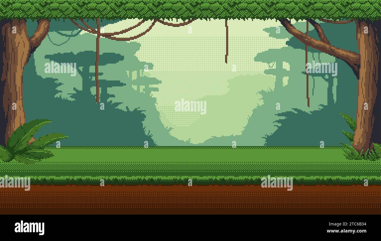 Pixel art jungle emplacement de jeu de forêt. Fond vectoriel de forêt tropicale sans couture Image Vectorielle Stock - Alamy