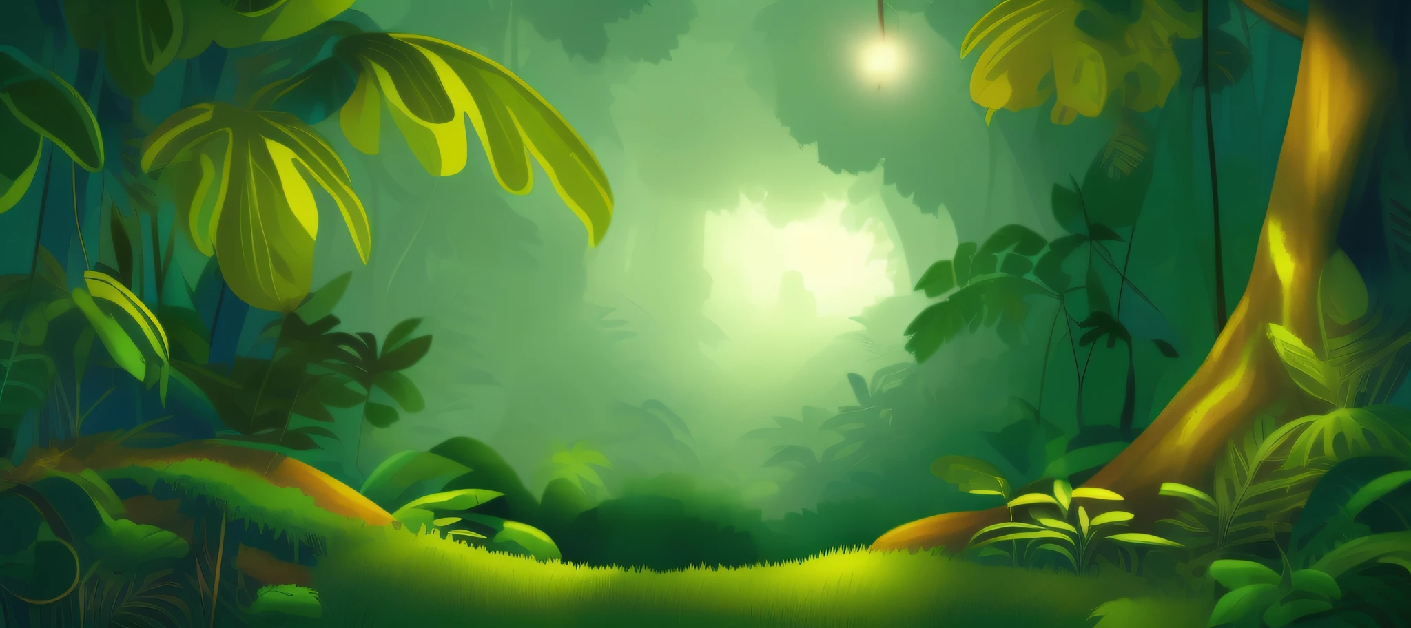 Illustration de dessin animé de la jungle,Il y a beaucoup de plantes et d'arbres, illustration de fond, art de fond, fond d'art de jeu 2d, Fond jungle - SeaArt AI
