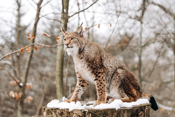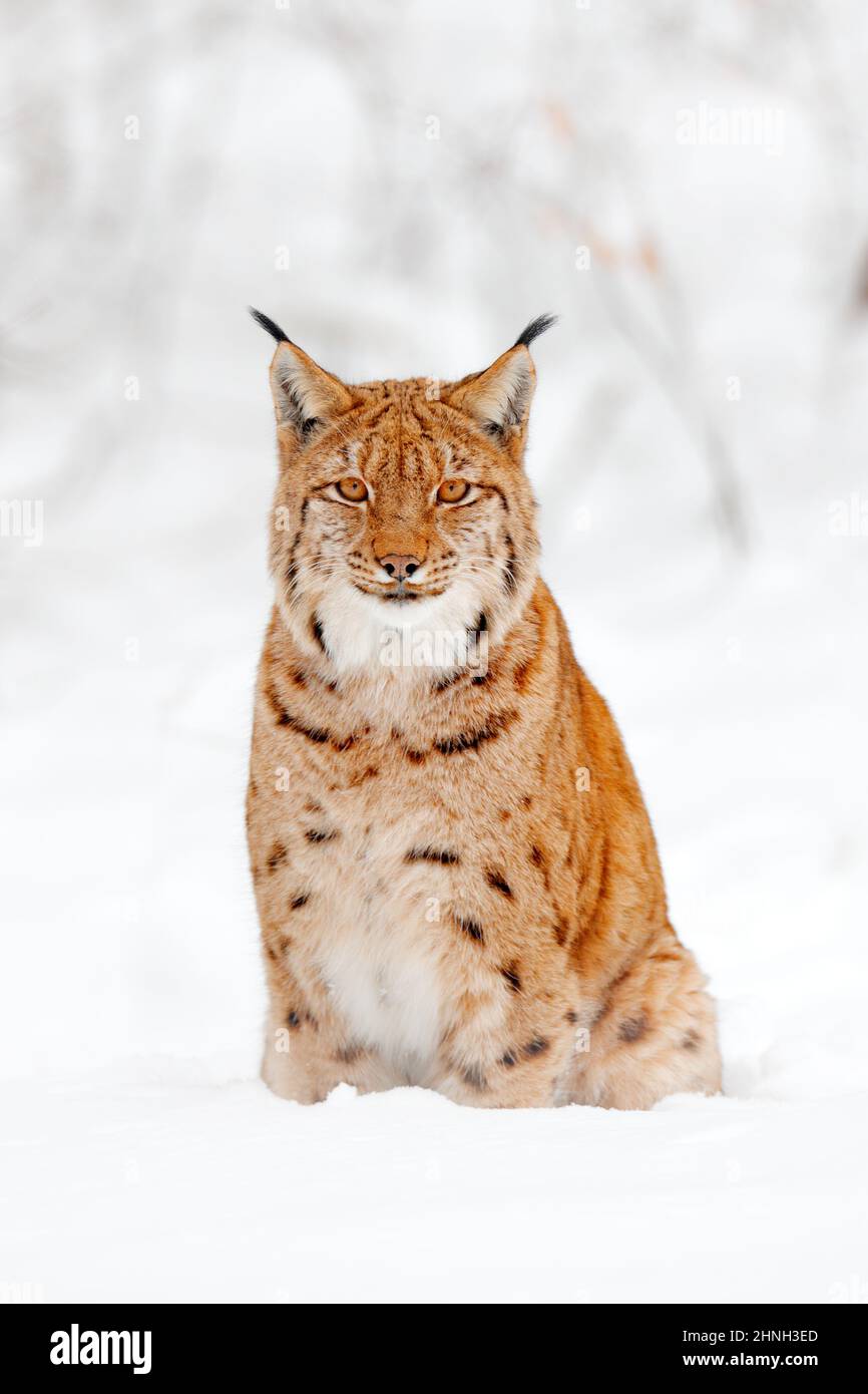 Lynx marchant, chat sauvage dans la forêt avec de la neige. Scène sauvage de la nature d'hiver. Joli grand chat dans l'habitat, état froid. Forêt enneigée avec belle Photo Stock - Alamy
