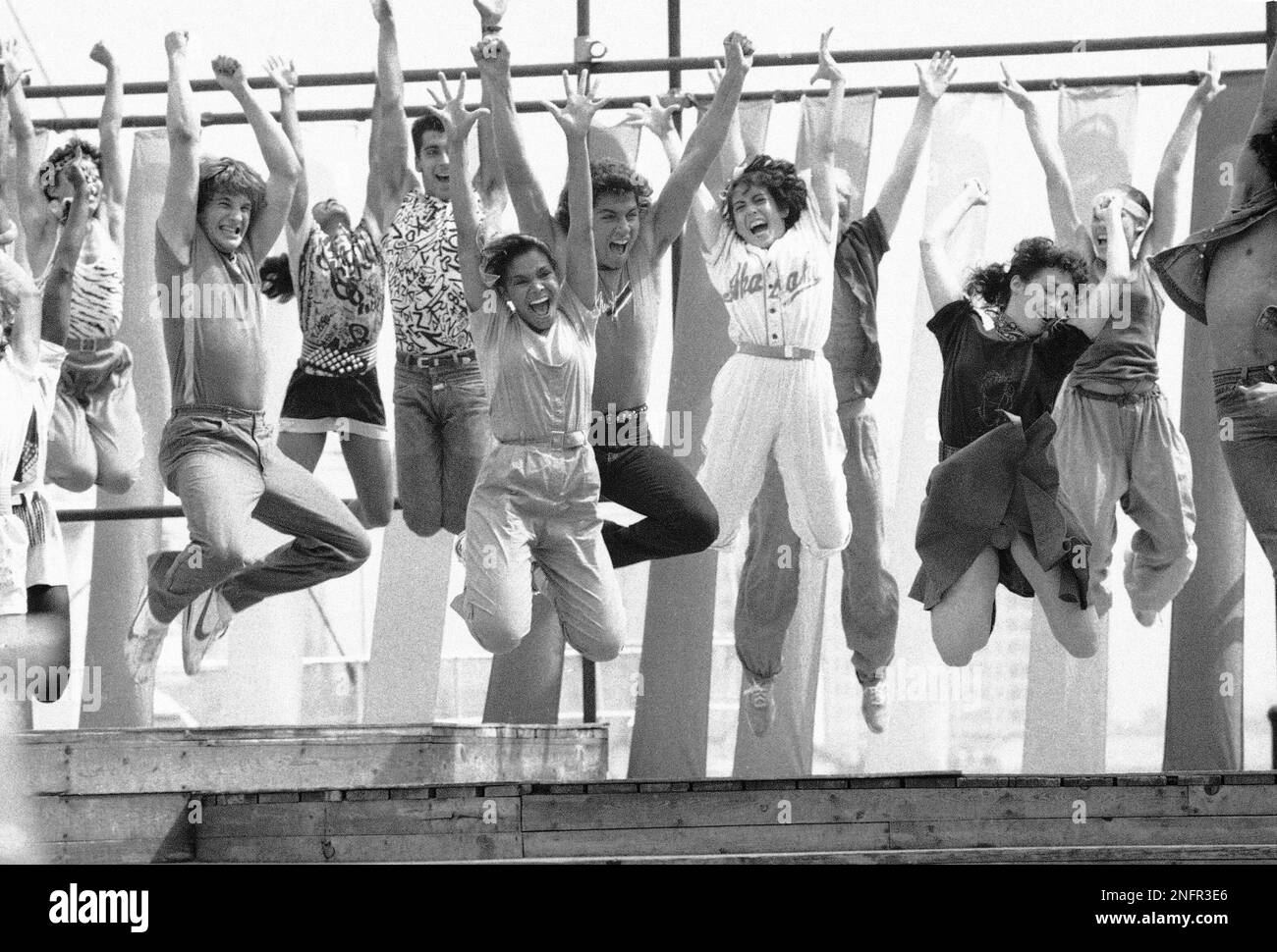 Janet Jackson, the sister of singer Michael Jackson, center, joins the cast of the television show "Fame" during a taping for the fall season at the South Street Seaport on Tuesday, July