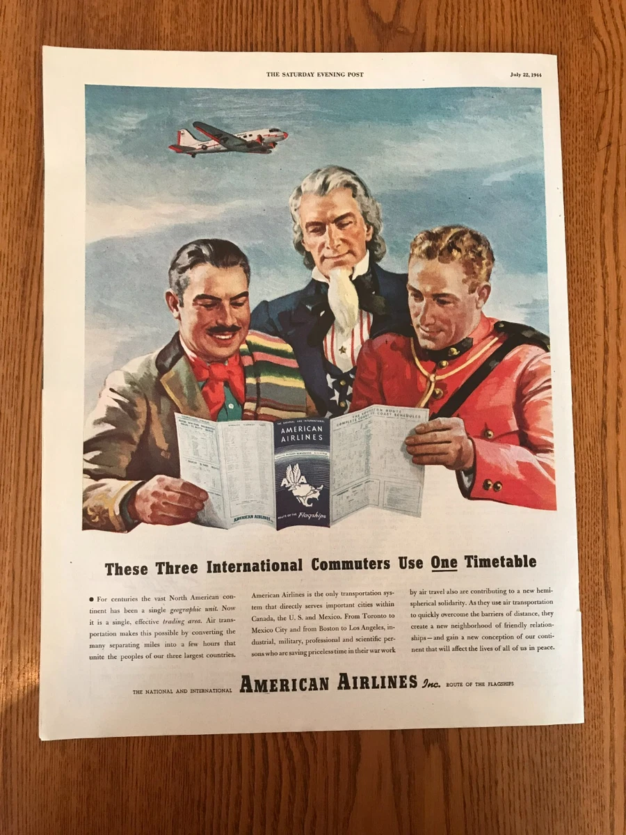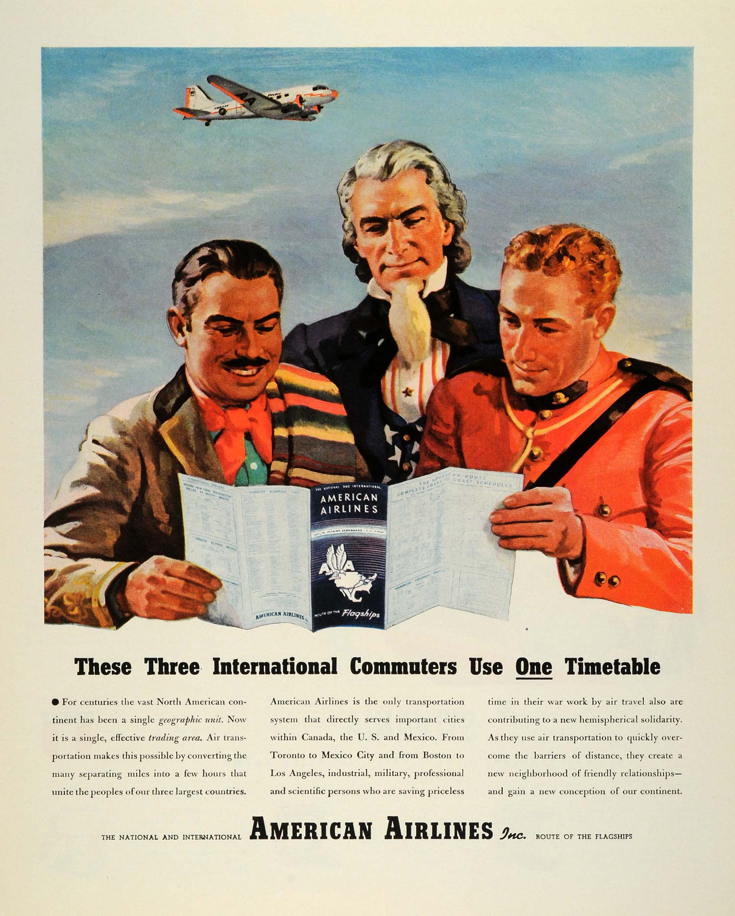1944 Ad American Airlines Flight Travel Uncle Sam Mexico Canada FZ6