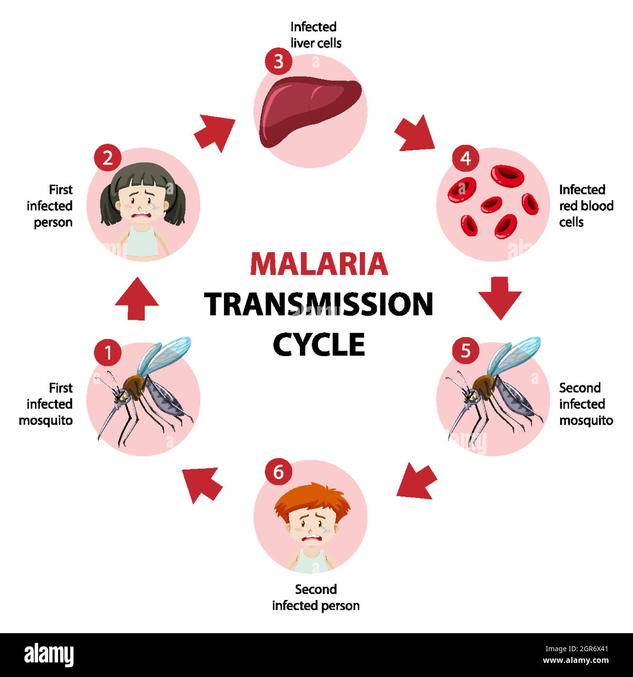 Malaria life cycle. Diagram showing the life cycle of the Plasmodium sp. parasite that causes malaria. It is transmitted to humans via the bite of an Stock Photo - Alamy