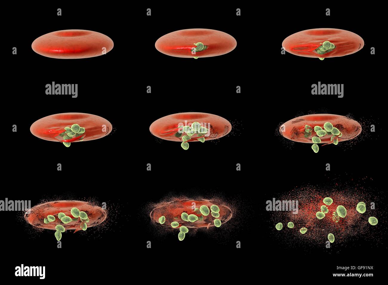 Paludisme. Libération De Parasites Du Paludisme À Partir De Globules Rouges. Mérozoïtes De Plasmodium Falciparum, Plasmodium Vivax, Plasmodium Malariae Ou Plasmodium Ovale Banque D'Images et Photos Libres De Droits. Image 49246650