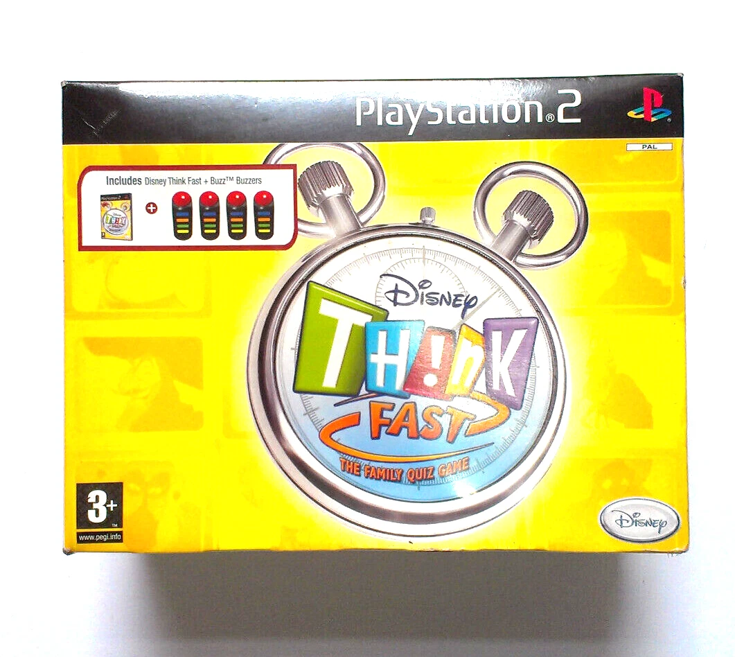 DISNEY THINK FAST, PS2, FAMILY QUIZ/TRIVIA +4x BUZZERS, BIG BOXED FACTORY SEALED | eBay