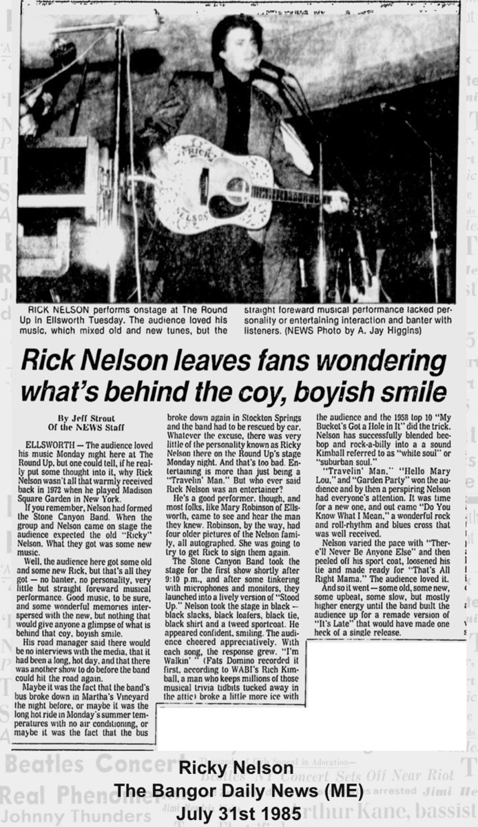 Jul 30, 1985: Rick Nelson at The Round Up Ellsworth, ME | Concert Archives