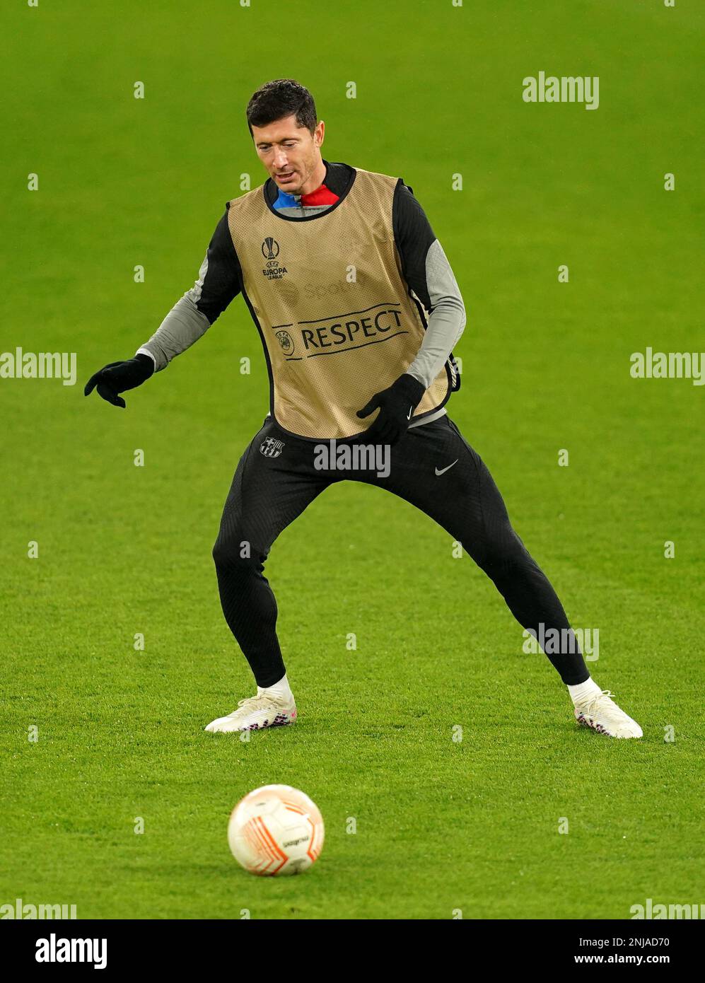 Barcelona's Robert Lewandowski during a training session at Old Trafford, Manchester. Picture date: Wednesday February 22, 2023 Stock Photo - Alamy