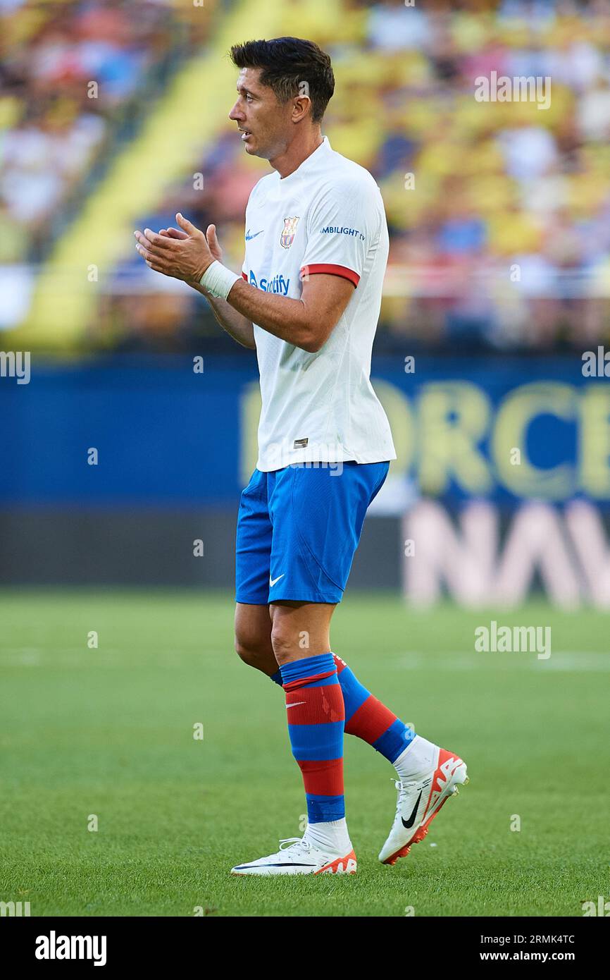 Vila Real, Spain. 27th Aug, 2023. Robert Lewandowski of FC Barcelona applauds during the LaLiga EA Sports match between Villarreal CF and FC Barcelona at Estadio de la Ceramica, August 27, 2023,