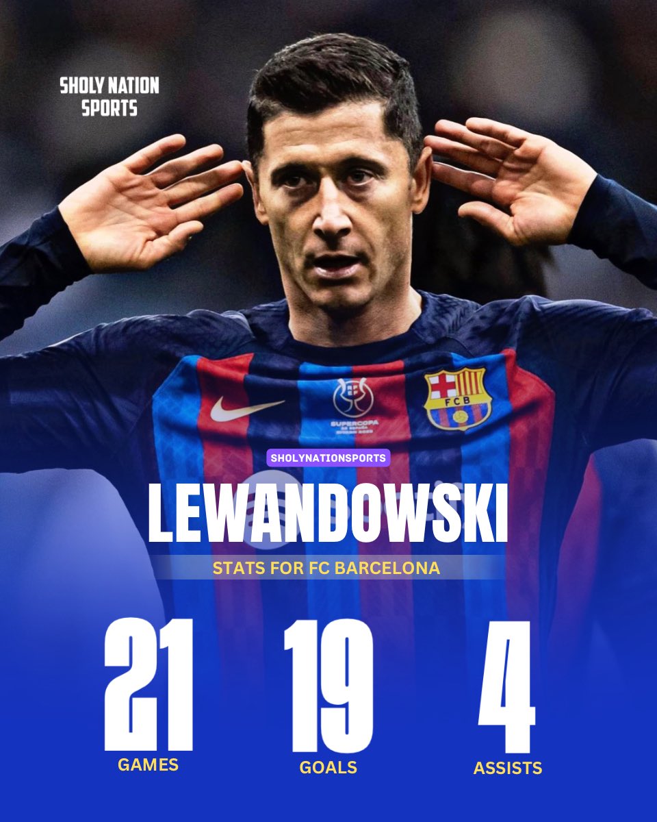 Sholy Nation Sports on X: "🇵🇱 Robert Lewandowski stats for Barca this season: 👕 21 games ⚽️ 19 goals 🎯 4 assists 34 years Old in his first season. 👏🏽 https://t.co/KY5F35Q48X" / X