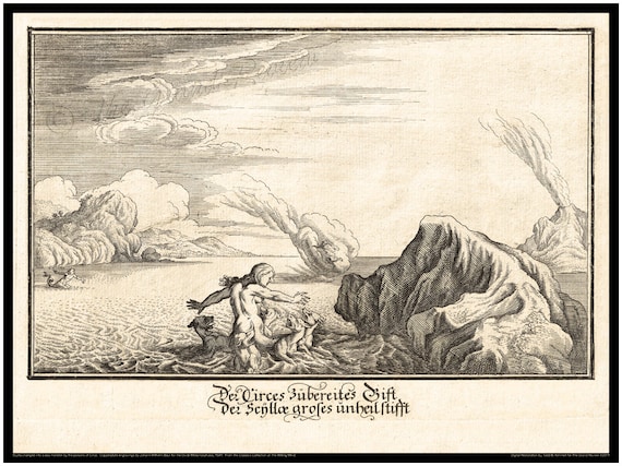 Classical Print Ovidii Metamorphosis 1641 Old German Edition Scylla Changed Into a Sea Monster by the Poisons of Circe Not Cerberus - Etsy