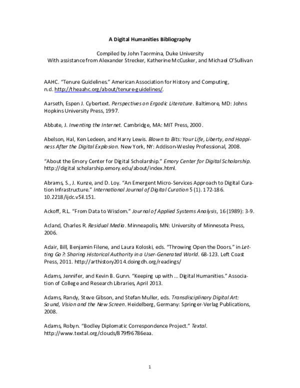 PDF) A Digital Humanities Bibliography