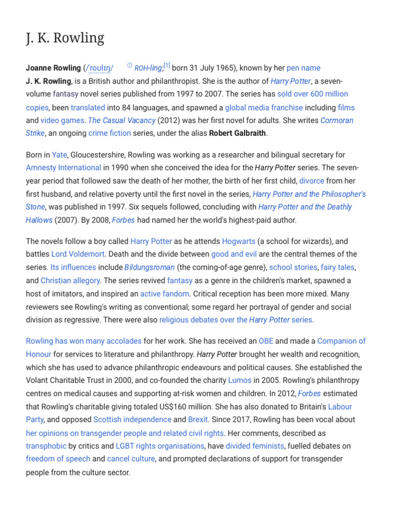 J. K. Rowling - Wikipedia | PDF | J. K. Rowling | Harry Potter