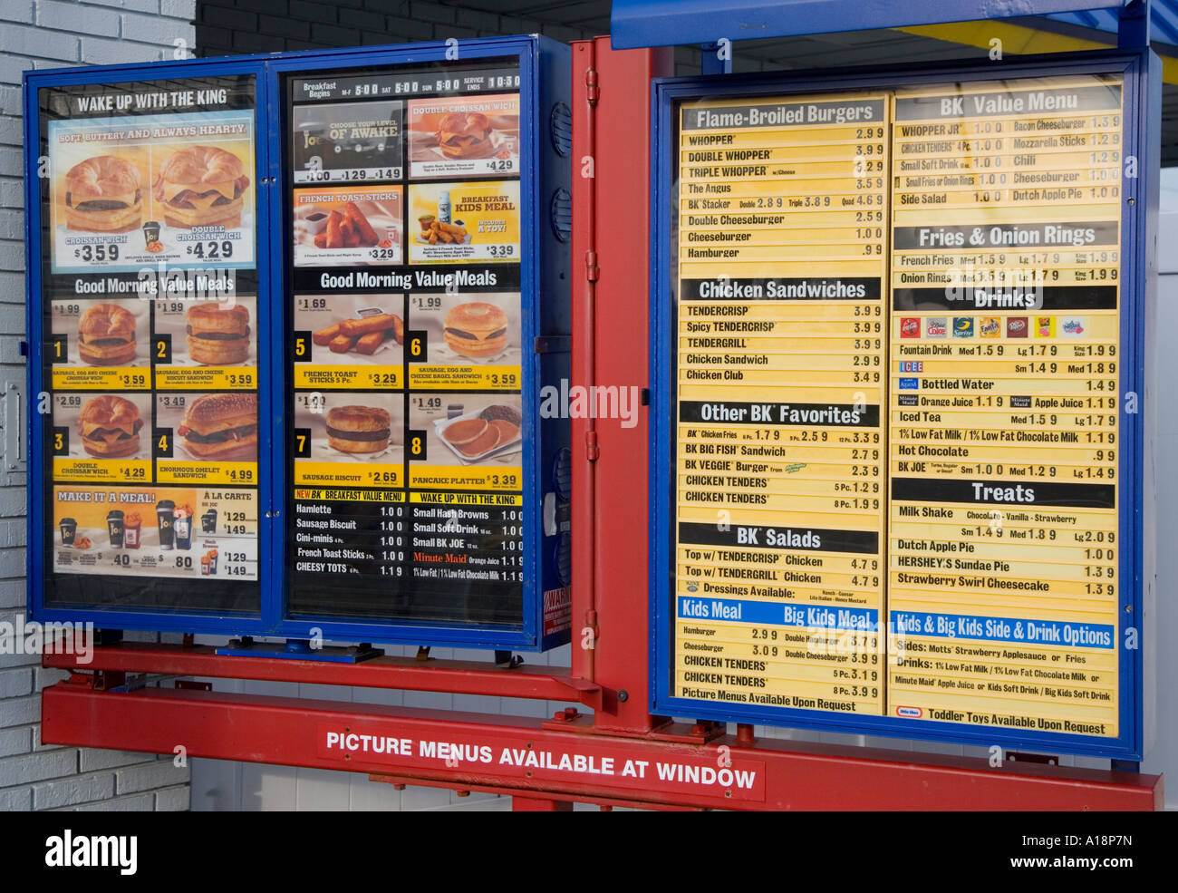 Au menu un Burger King drive thru Photo Stock - Alamy